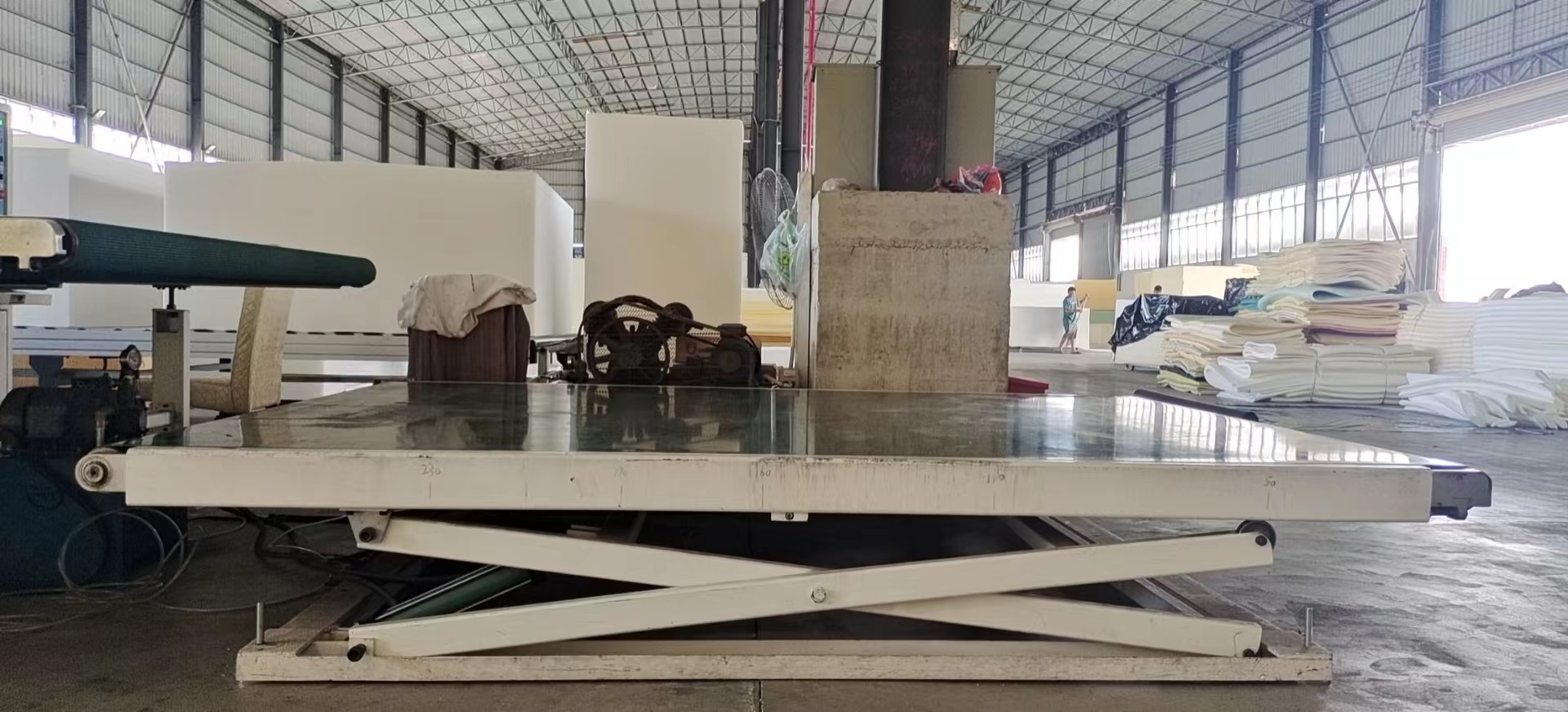 Device for lifting and lowering materials and conveying sponges with special-shaped CNC cutting machine.